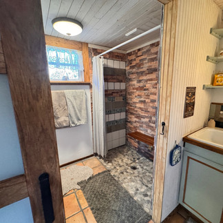 An ADA accessible cottage with direct access to bathrooms, kitchen, refrigerator, AC/heat, two separate day beds that can fold out into King size bed. Will have curtains to separate room from bathroom for privacy.